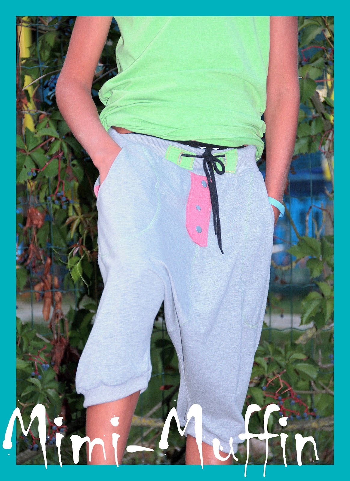 Die Sarouelhose ist wie bei Leonie halb Lang und tief geschnitten.
